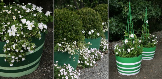 It’s a little ironic, given that I can’t actually drink wine at the moment, that I spent most of this weekend eyeing up wine barrels. Painting them, planting them, tying ribbons on the jolly things… they’re my new favourite garden accessory.
